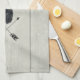 Une serviette de cuisine avec une tête de cerf noir avec de grands bois et faite de lignes géométriques et portant une couronne rose florale. Flèches croisées en dessous. Design rustique et tendance.L'arrière - plan est une image numérique de planches de bois beige douce.