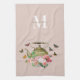 Linge De Cuisine Théière Party Fleurs Roses et Papillons Monogramme