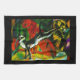 Belle huile colorée sur toile de l'artiste allemand Franz Marc intitulée "Trois Chats". Le chat au premier plan est noir et blanc, debout sur ses pattes avant avec des pattes arrière dans l'air, tandis qu'un chat jaune et un grand chat rouge sont dans l'arrière - plan. Merveilleuse combinaison de rouge, vert, jaune et violet. Date d'achèvement : 1913.
