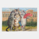 Trois petits chatons - Illustration de leurs mitaines perdues - Pauvres petits chatons qui ont perdu leurs mitaines ! C'est la plus belle image vintage de trois petits chatons tirée d'un livre pour enfants des années 1800. Les chatons sont dans le jardin, juste au moment où ils ont compris que leurs mitaines sont parties. Un chaton a son éventail, et un autre a une ombrelle, mais pas une mitaine en vue ! Cette comptine fait partie du recueil de comptines de la Mère l'Oye. Trois petits chatons ont perdu leurs mitaines, Et ils se sont mis à pleurer, Oh, chère maman, nous craignons fort D'avoir perdu nos mitaines. Quoi ! vous avez perdu vos mitaines, sales petits chatons ! Alors vous n'aurez pas de tarte. Miaou, miaou, miaou. Non, vous n'aurez pas de tarte. Les trois petits chatons ont retrouvé leurs mitaines, Et ils se sont mis à pleurer, Oh, chère maman, voyez ici, voyez ici, Nous avons retrouvé nos mitaines ! Mettez vos mitaines, sales petits chatons, Et vous aurez de la tarte. Ronron, ronron, ronron, Oh, laissez-nous manger de la tarte. Les trois petits chatons ont mis leurs mitaines, Et ont vite mangé toute la tarte ; Oh, chère m