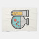 Serviette de cuisine avec une jolie illustration d'un tube d'essai tenant du liquide jaune et un flacon/bécher arrondi tenant du liquide vert avec des bulles rouges.