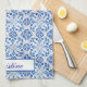 Carrelage portugais, serviette de cuisine méditerranéenne. Rustique, boho, carrelage vintage, bleu, artisanat botanique. Veuillez le personnaliser avec votre nom.