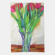 D'une aquarelle d'art originale de fleurs de tulipes roses et rouges dans un vase en verre de l'artiste Sacha Grossel. Cet art encore vivant original est coloré et vibrant. Les tulipes sont une fleur d'hiver populaire en Hollande.