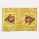 Illustration d'une tulipe à ressort rouge sur un arrière - plan abstrait doré et jaune.