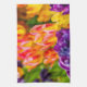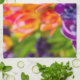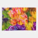 Tulipes colorées sur un lit à fleurs. Presque toutes les couleurs arc-en-ciel présentes. Scène florale lumineuse et positive. Photographie macro.