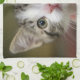 La photo montre un gros plan du visage d’un chaton. Le chaton a une fourrure blanche moelleuse et de grands yeux verts. Le chaton a l'air curieux et adorable. L'arrière - plan est flou et sombre. La photo est prise au niveau du chaton, ce qui la rend plus intime et amicale. Personnalisation à 100 %. Cliquez sur le bouton PERSONNALISER pour ajouter, déplacer, supprimer, redimensionner ou modifier les polices ou les graphiques.