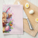 Vache des Highlands à l'aquarelle douce pour Pâques avec des fleurs, des œufs de Pâques et un poussin.