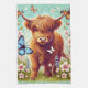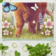 Linge De Cuisine Vache Highland avec papillons et fleurs printanièr