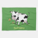 Linge De Cuisine Vache mignonne en vert dessin animé sur le terrain