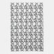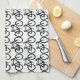 Cette serviette de cuisine présente un design contemporain d'un motif abstrait qui répète des bicyclettes noires sur un arrière - plan blanc.