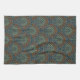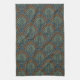 Cette serviette de cuisine est équipée d'un ventilateur de pétoncles en vert d'olive terreux, rouille sur bleu marine pour un look bohème.