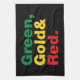 Linge De Cuisine Vert, Or & Rouge.