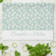 Joli torchon de cuisine avec fleurs bohèmes blanches et vert sauge. Le vert est un vert pastel clair menthe avec des fleurs blanches. Personnalisez-le avec votre nom ou texte. Fait un excellent cadeau de mariage ou de pendaison de crémaillère.