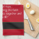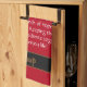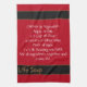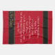 La serviette en gaufre est de couleur rouge avec des rayures noires et tang à chaque extrémité et du texte blanc sur une serviette fantaisie avec une jolie inclinaison sur la vie. Customiser ou acheter tel quel.