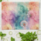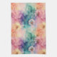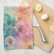 Vintage dandelion abstract pattern kitchen towel featuring delicate seed heads layered over rich teal, pink, and muted purple watercolor textures. Dreamy and artistic with an ethereal mixed-media aesthetic, this seamless design is ideal for botanical art lovers, boho style fans, nature enthusiasts, and vintage-inspired decor admirers.