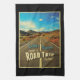 Explorez, découvrez, faites un voyage sur la route aujourd'hui! Ce magnifique design vintage amusant comprend une route asphaltée aux États-Unis, avec des montagnes et du ciel bleu derrière. Conduisez votre voiture et voyez ce que vous pouvez voir!
