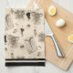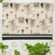 16" x 24" serviette de cuisine avec une image des dames chics et des points de repère importants à Paris sur bronzage. Il y a L'arc de Triumphe, la tour d'Eiffle et la belle basilique du Sacré Coeur sur le sommet de Montmartre. Frontières noires de rayure.