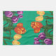 Delicately-outlined watercolor purple, orange, and pale yellow tulips pop against a gorgeous teal background. Tastefully colorful, this soft and absorbent towel adds brightness, contrast, and beautiful artwork to your kitchen setting.