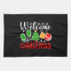 Cheerful Welcome Christmas design featuring a festive tree, ornaments, mittens, and snowflakes—perfect for holiday gifts, decor, and seasonal apparel. (Designcode-23758).