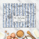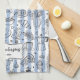 Decorate your kitchen with our Whimsical Italian Food Illustration Blue Stripes kitchen towel. Featuring cute hand drawn illustration of Mediterranean food on stripes pattern. Personalize it with your family name for a unique touch.