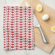 Linge De Cuisine White Dog Bone Herringbone Pattern Brick Red