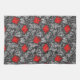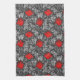 Serviette de cuisine dans un vintage William Morris motif floral damassé de fleurs et de feuilles d'anémones, numériquement rehaussé et coloré - gris argenté clair / gris feuilles, et fleurs dans les nuances de rouge à lèvres profond sur un arrière - plan gris graphite foncé