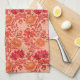 Serviette de cuisine dans un vintage William Morris, Art Nouveau, imprimé floral de chrysanthèmes stylisés, numériquement rehaussés et colorés, dans les tons de corail orange, mandarine profonde, et orange doux, sur un arrière - plan pastel orange / abricot