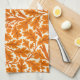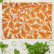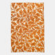 Serviette de cuisine dans un William Morris Art Nouveau, motif en textile - feuilles en chêne et branches dans l'orange rouille profonde, accentué de marron, avec un arrière - plan crème / blanc cassé