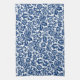 Serviette de cuisine dans un motif vintage de damas florales William Morris, numériquement rehaussée et colorée, en bleu cobalt profond sur un arrière - plan blanc
