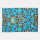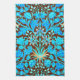 Serviette à main dans un vintage William Morris motif de jacinthes, tulipes et feuilles, dans les tons d'aqua douce et de bleu cérulean, accentué de corail rose et orange, sur un arrière - plan chocolat foncé