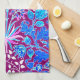 Serviette à main dans un vintage William Morris motif de jacinthes, tulipes et feuilles, dans les tons bleu aqua et cobalt, accentué de fuchsia et rose pâle, sur un profond améthyste violet arrière - plan