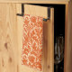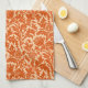 Serviette de cuisine dans un vintage motif damassé William Morris de fleurs de chardon et de feuilles, dans une profonde mandarine orange, sur un arrière - plan pastel orange, numériquement rehaussé et coloré