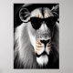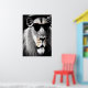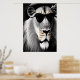 Art noir et blanc de tête de lion avec lunettes de soleil. C'est un art généré par l'IA.