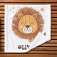 Ce gant de toilette personnalisé présente un dessin ludique et fantaisiste d'un lion souriant avec une tête surdimensionnée drôle.
