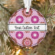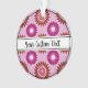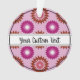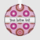 Christmas ornament with a seamless modern geometric flower pattern in the colors of the lipstick lesbian pride flag - pink, white, and orange lesbian pride design on a pink background; with an editable text field for your name or message; a great way to decorate your Christmas tree :D