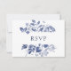 Cette belle et élégante carte de réponse mariage botanique présente des feuilles d'encre bleue tendance sur un arrière - plan blanc, et un endroit pour le choix de vos invités.