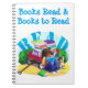 Gardez une trace de tous les livres que vous voulez lire et des livres que vous avez lus en un seul carnet. Les amateurs de livres de tous les âges aimeront ce Carnet amusant Book Wagon avec des oeuvres d'art originales peintes par l'illustrateur de livres pour enfants primé Traci Van Wagoner avec une fille lisant un livre tout en se penchant sur un wagon rouge plein de livres et le mot, LIRE en bleu texturé derrière. Lisez et écrivez !