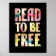 Livres et affiche de lecture Lire pour être gratuit avec des lettres remplies d'aquarelle sur arrière - plan noir fait un joli décor de mur pour la bibliothèque maison, la salle pour enfants, la classe de l'école, groupe d'alphabétisation, ou la bibliothèque. Insistez sur l'importance de la lecture avec un poster amusant et coloré.
