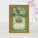 Rétro/vintage carte de voeux du jour de St Patrick. Quatre châteaux irlandais de point de repère, chacun dans un pétale d'un trèfle de quatre feuilles ! Château de Blackrock, liège ; Château de Ross, Killarney ; Château de cajolerie, liège ; Château de Killeney, Dublin. Trois acclamations pour l'île de vieil Erin, trois acclamations pour l'harpe et le drapeau du vert, trois acclamations pour les garçons de shamrock, et un baiser pour Colleen irlandaise !