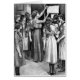 Oeuvre d'un livre vintage pour filles ados. Montre un groupe de filles se rassemblant autour d'un enseignant publie une liste sur le mur