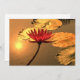 Un beau nénuphar rayonnant s'élève des profondeurs d'un étang boueux. Le soleil couchant se reflète dans les eaux et projette une lueur dorée qui transforme une humble fleur de lotus et ses feuilles en une image glorieuse.
