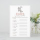 This retro and chic baby cowgirl's baby word scramble/baby shower game card features a white background with a cowgirl on a horse. Personalize it for your needs. You can find matching products at my store.