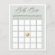 Elégante signature calligraphie "Baby Bingo" graphique, feuille de jeu de baby shower. Aquarelle orange et argent doux cadre couleur sauge avec coordination de la couleur sauge.