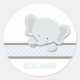 Un mignon petit éléphant survole les pois bleus et blancs. Personnalisable avec le nom de votre enfant.