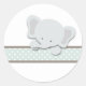 Un mignon petit éléphant survole les pois turquoises et blancs.
