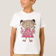 Une adorable petite fille aux pigtails et une robe rose tient une série de lettres qui épellent "QUATRE" sur les T-shirts, cartes, autocollants, sacs, et bien plus !