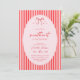 Little Sweetheart Girl Baby Shower Invitation with a hand drawn bow and a red-pink stripes background