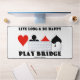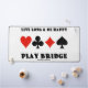 Si vous souhaitez vivre plus longtemps et être heureux et que vous êtes un joueur de pont, vous apprécierez ce tapis de bureau de relais avec les quatre costumes de carte ainsi que le dicton "Live Long & Be Happy Play Bridge". Tapis de bureau de conseil de pont sonore pour n'importe quel pont ou lecteur de pont en double - quel que soit l'âge!