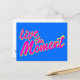 Vivez le moment texte rose vif, bleu royal, jaune et cyan inspiration dire / slogan 1980 style carte postale graphique. Idéal pour les cartes promotionnelles. © Conçu par Sarah Trett pour www.sarahtrett.com