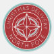 Un autocollant de style postal de Noël bleu et rouge pour les cadeaux. Le dessin dit "livraison de Noël" et "pôle Nord" autour de la frontière en blanc avec une conception de boussole sur un arrière - plan rouge au milieu. L'autocollant est conçu pour ressembler à une marque postale ou à un sceau du pôle Nord. Ce serait parfait pour décorer des cadeaux de Noël ou pour sceller les enveloppes sur vos cartes de Noël.